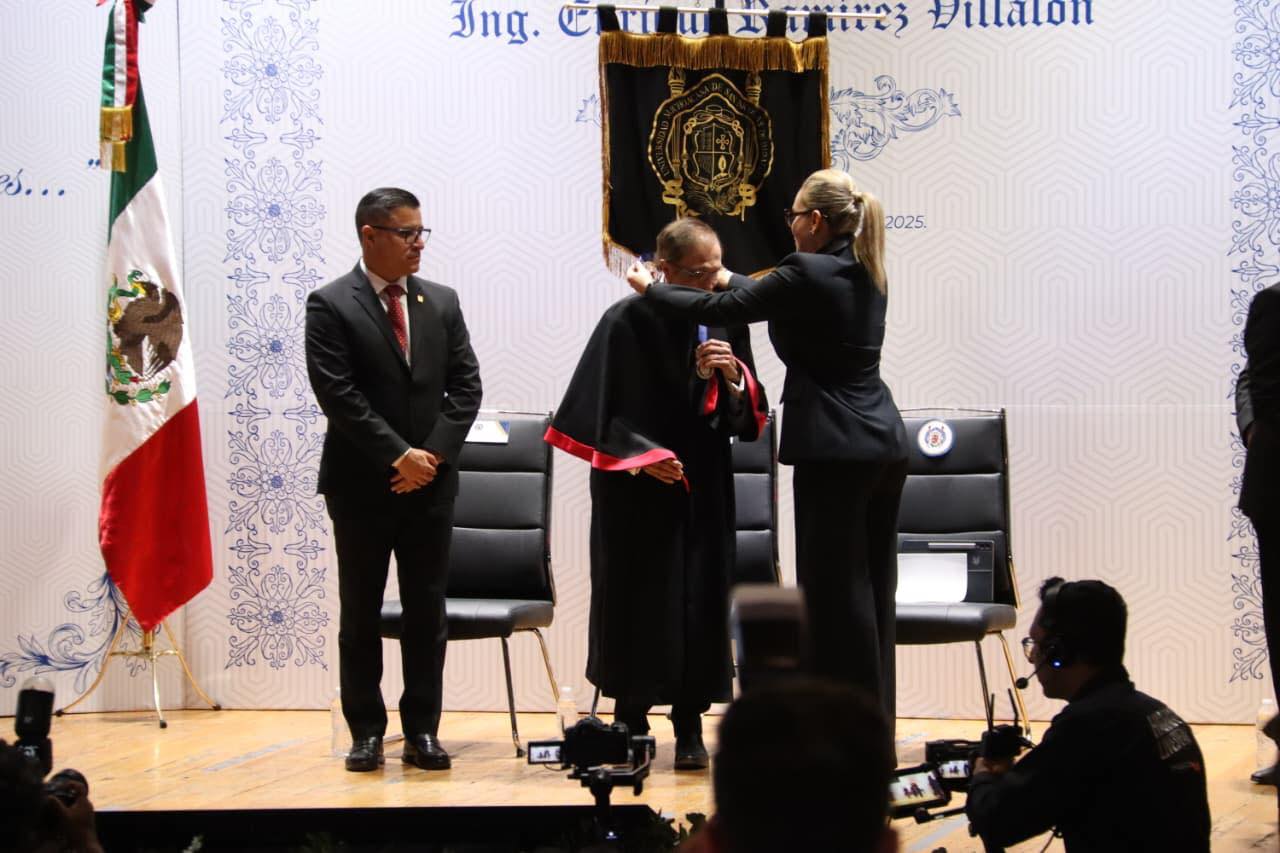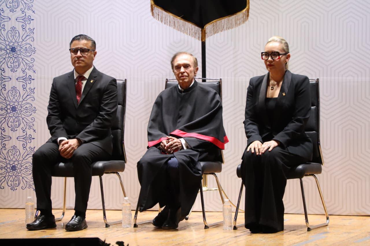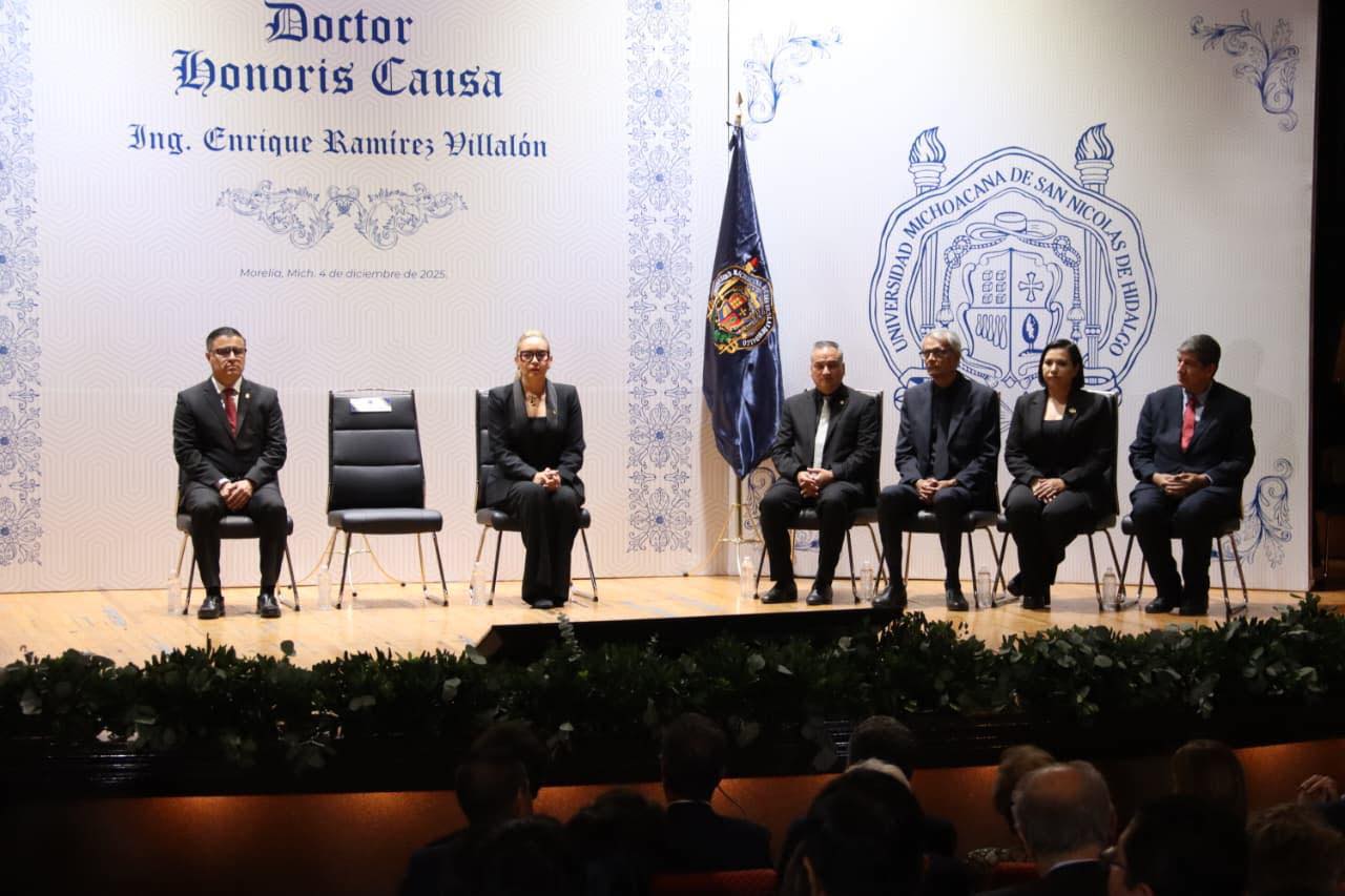 La CANACO SERVYTUR Morelia estuvo presente en la sesión solemne del Consejo Universitario, donde se otorgó el Mérito Honoris Causa a Enrique Ramírez Villalón, una distinción que reconoce su amplia trayectoria y aportaciones al desarrollo académico y social.